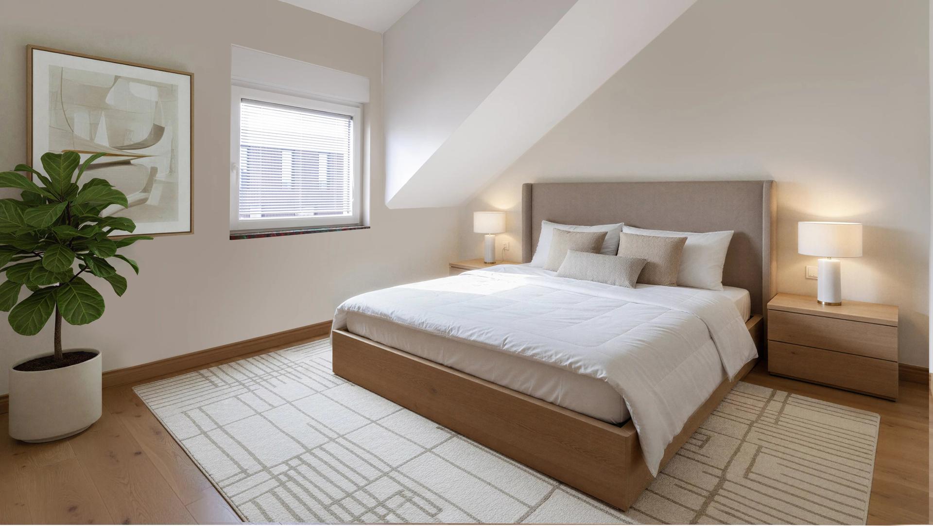 Un escalier intérieur mène à un palier de ±5 m², distribuant trois chambres spacieuses de ±15,5 m², ±19 m² et ±24 m² – cette dernière donnant accès à une terrasse – ainsi qu’une salle de bains moderne de ±8,5 m².